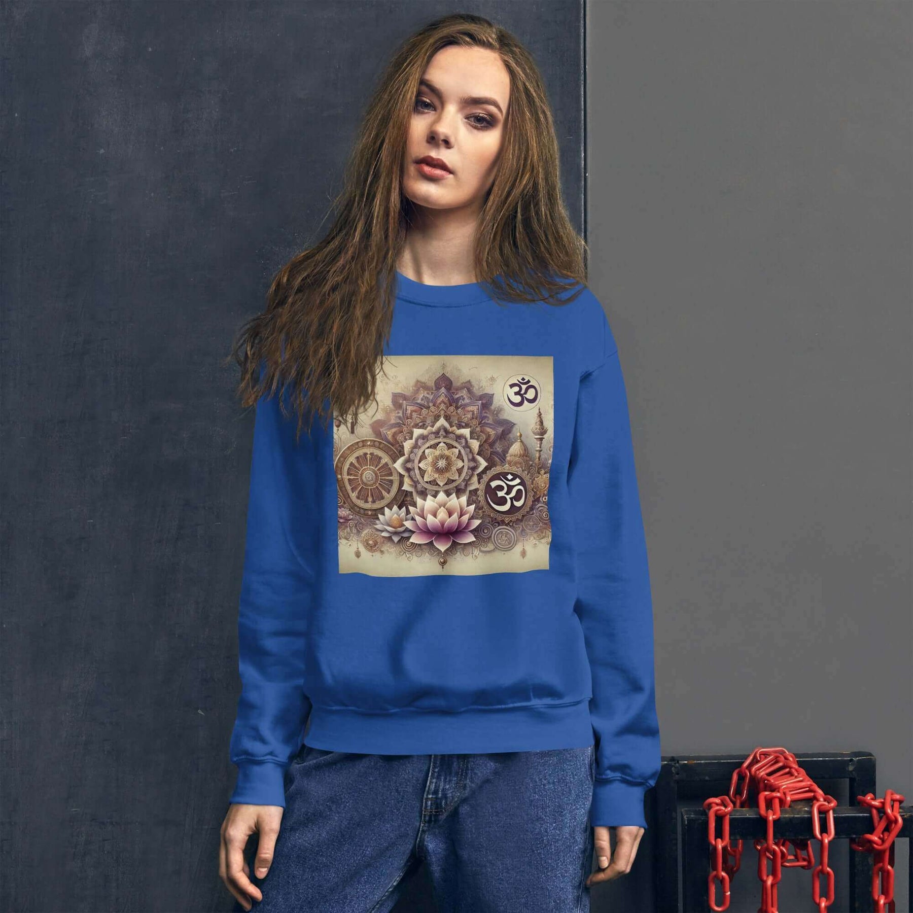 Pair the Om Altar Sweater with jeans, sweatpants, or leggings for versatile looks. Perfect for relaxed days, yoga sessions, or spiritual retreats, it offers comfort and elegance in every moment.