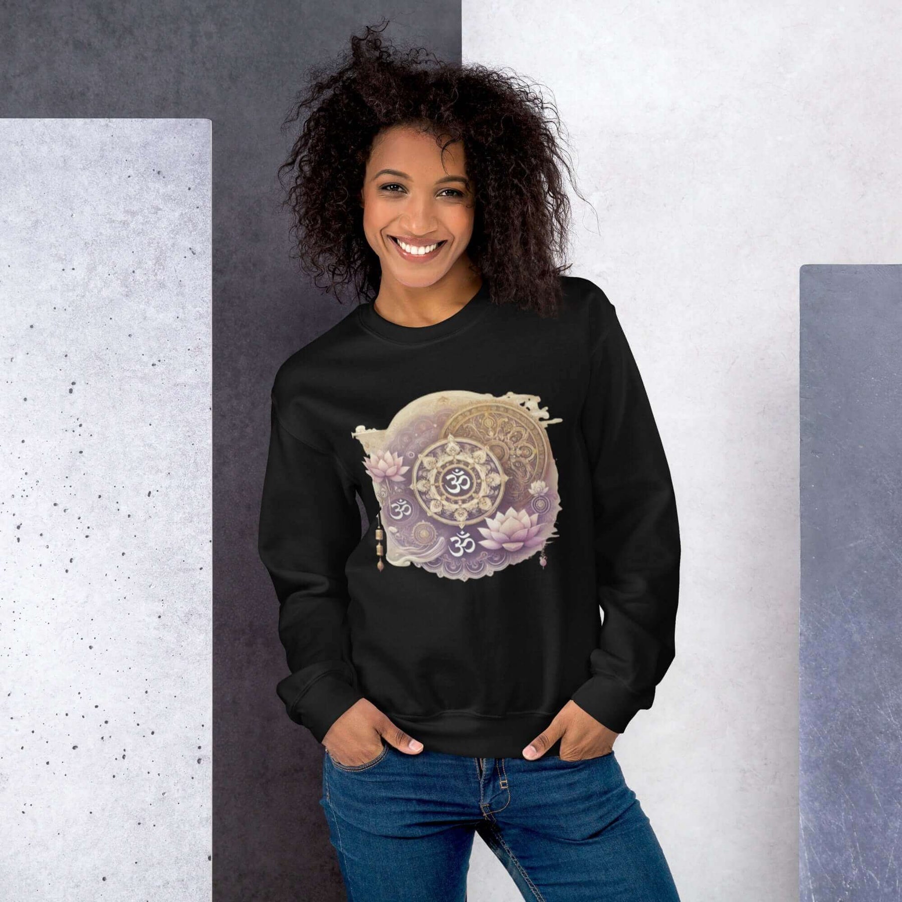 The versatile design can be effortlessly paired with leggings, jeans, or sweatpants for a stylish and relaxed look. The unisex cut adapts to all body types, making it the perfect choice for men and women who appreciate comfortable and thoughtful fashion. Whether for spiritual gatherings, a day trip, or simply as a cozy piece with deeper meaning, this sweater brings mindfulness and elegance to your wardrobe.