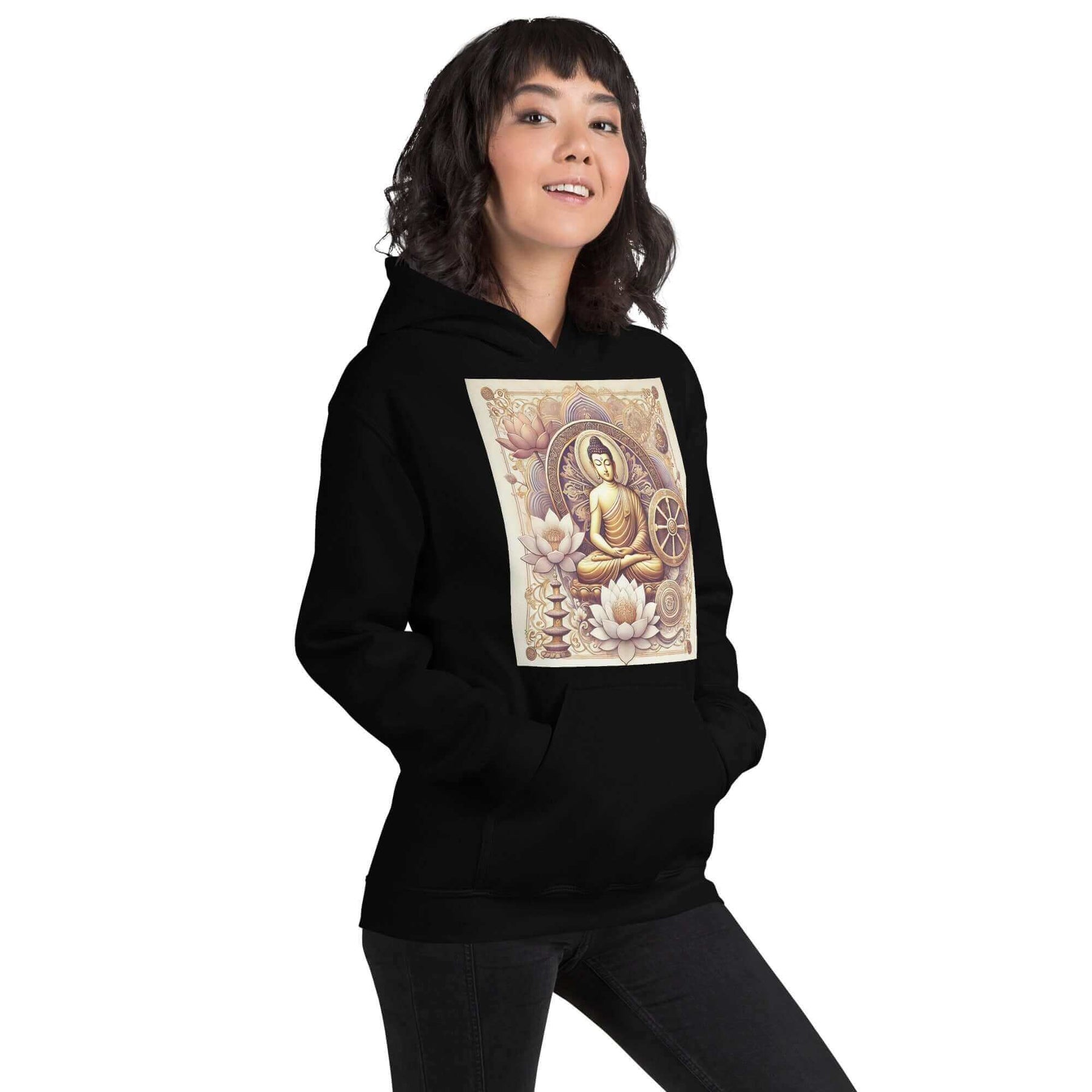 Golden Buddha This hoodie is a must-have for anyone who wants to combine spirituality with modern style and comfort. Ideal for self-expression or as a thoughtful gift , the Golden Buddha Mandala Art Hoodie is the perfect choice for anyone seeking expression, inner peace, and a harmonious blend of fashion and spirituality.