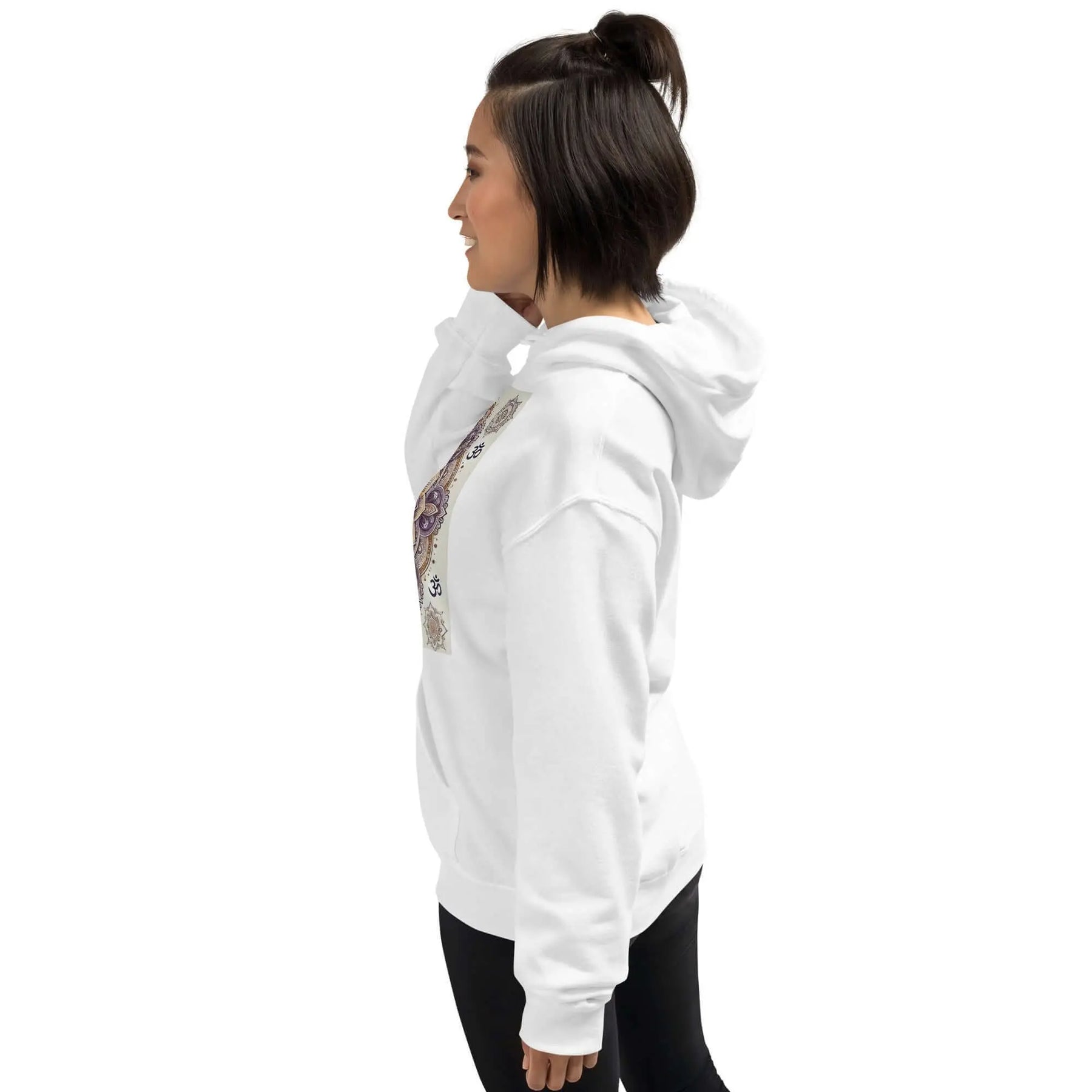 With its relaxed, comfortable fit, the women's mandala hoodie pairs effortlessly with jeans, sweatpants, leggings, or shorts, making it a versatile choice for any casual outfit. The simple yet striking design easily blends into your everyday wardrobe, adding a spiritual touch.