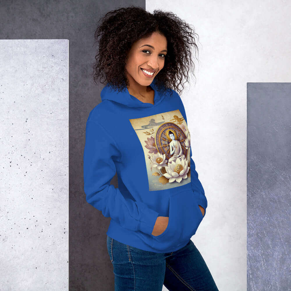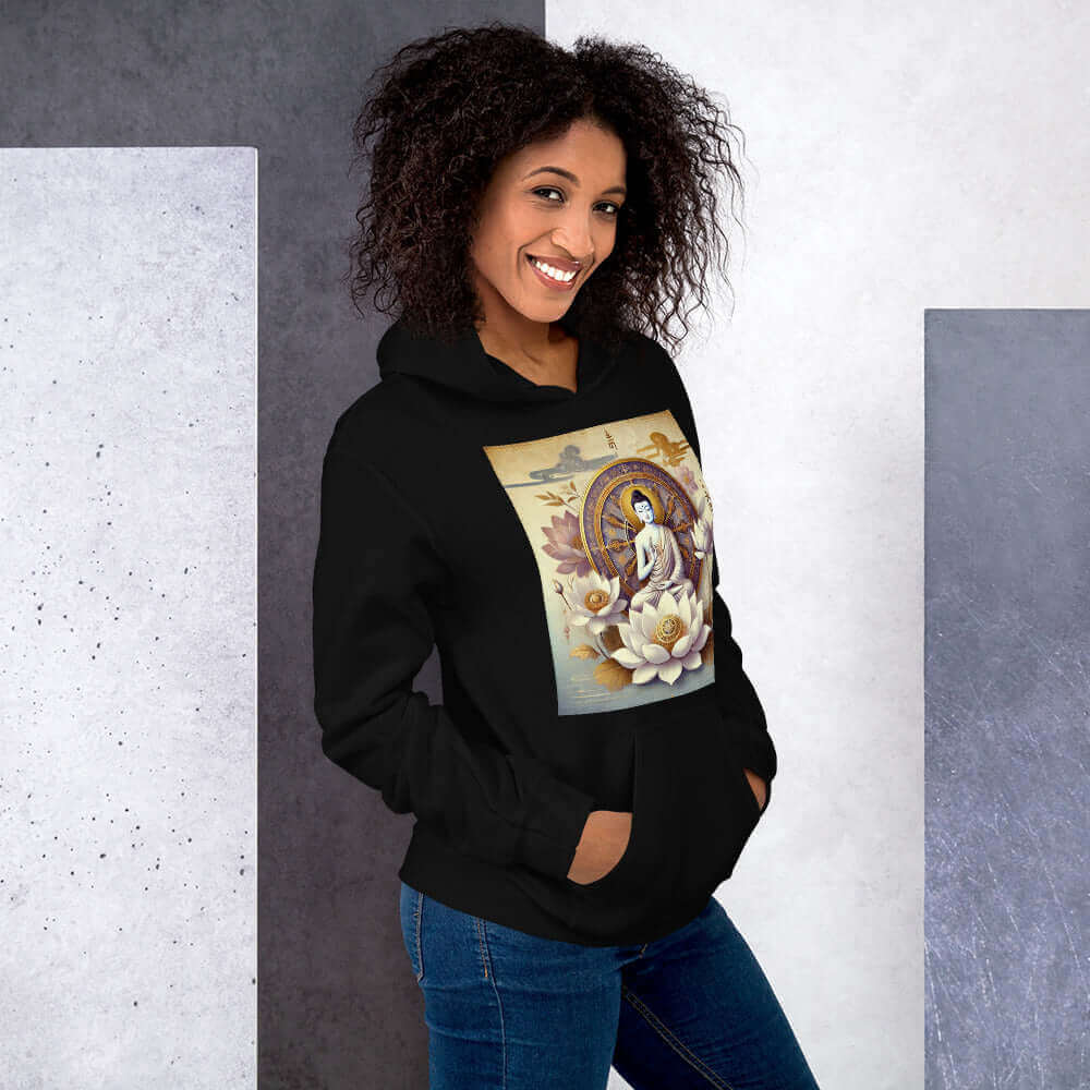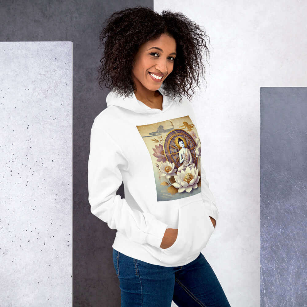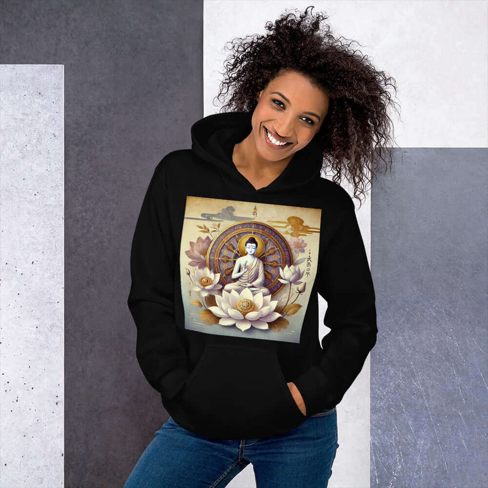 The versatility of this hoodie allows it to be effortlessly paired with leggings, jeans, or sweatpants, making it perfect for any occasion. From spiritual retreats to everyday outfits, this hoodie supports your spiritual path while providing comfort and style.