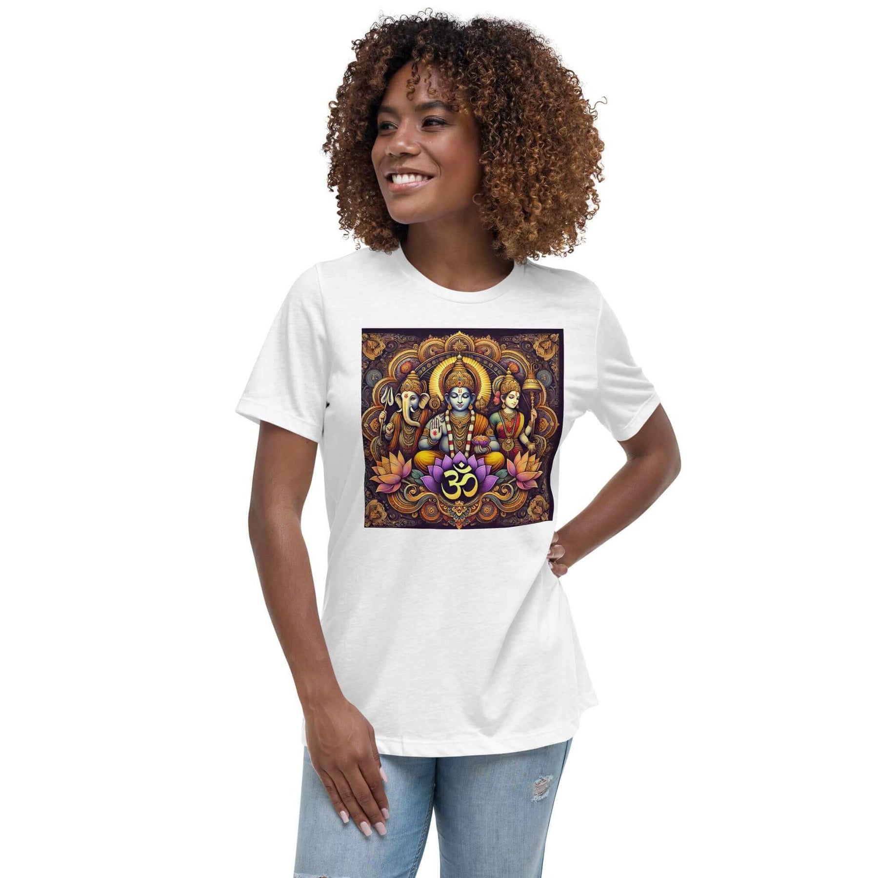Om of the Three Gods Women's T-Shirt - Sacred Design with Shiva, Ganesha, And Parvati for Spiritual Balance and Peace