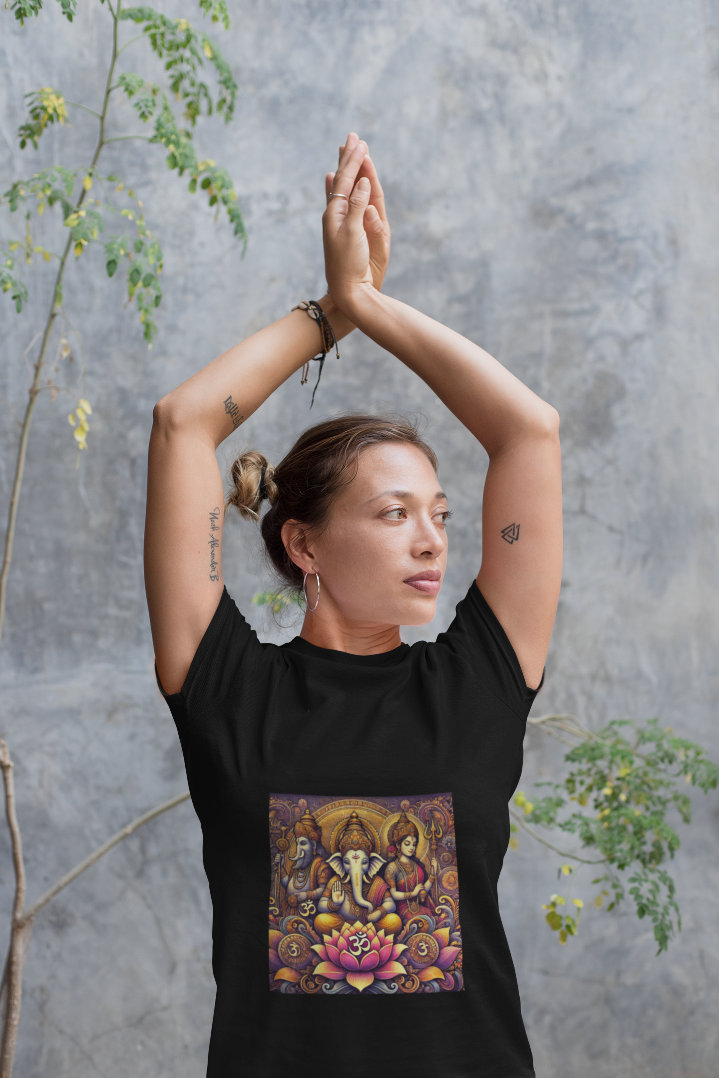 Das T-Shirt ist angenehm weich, langlebig und ideal für Meditation, Yoga oder als stilvolles Statement im Alltag. Die detailreiche Illustration macht dieses Shirt zu einem echten Blickfang und einem Ausdruck von innerer Balance, Stärke und spiritueller Fülle.