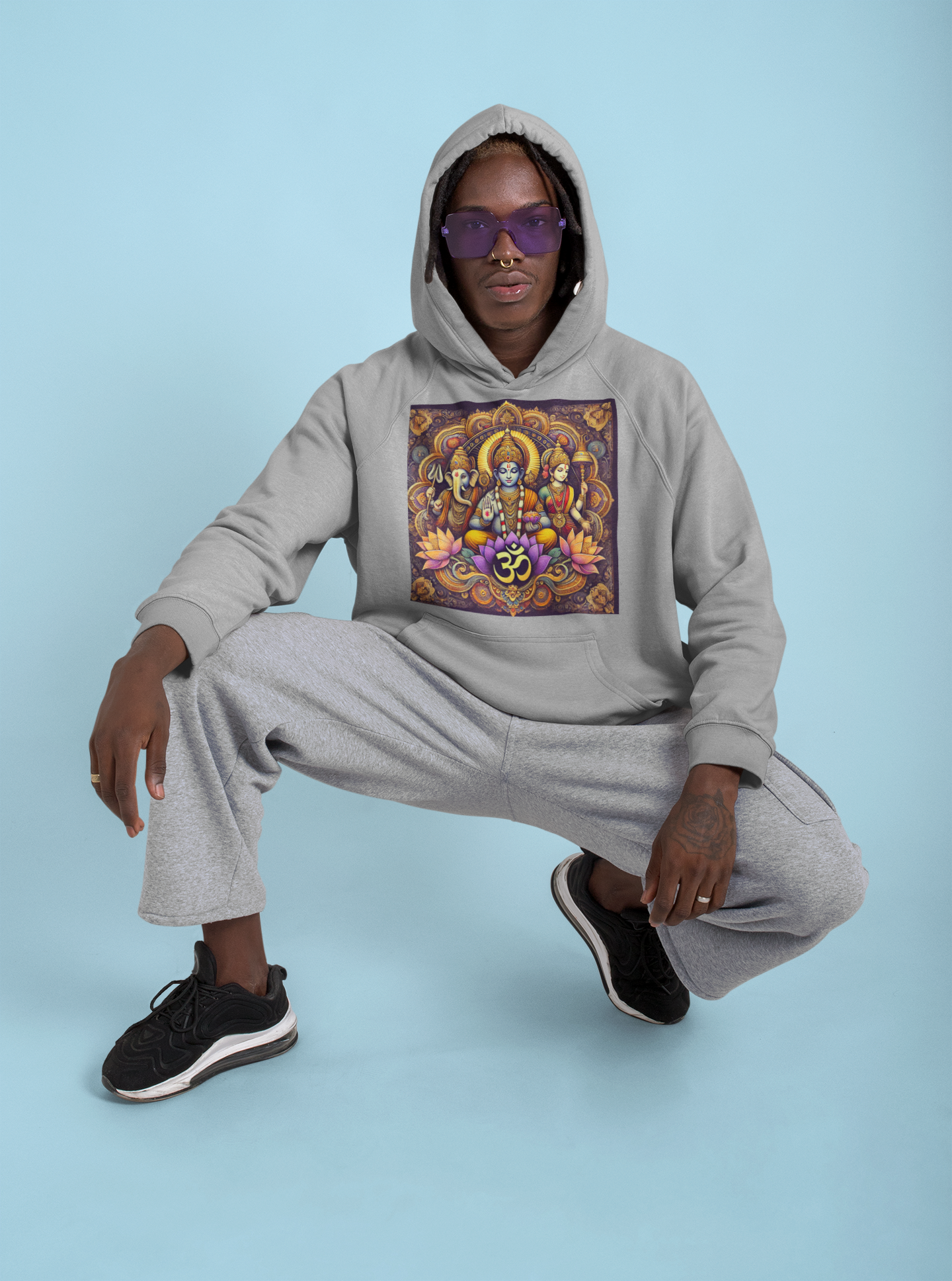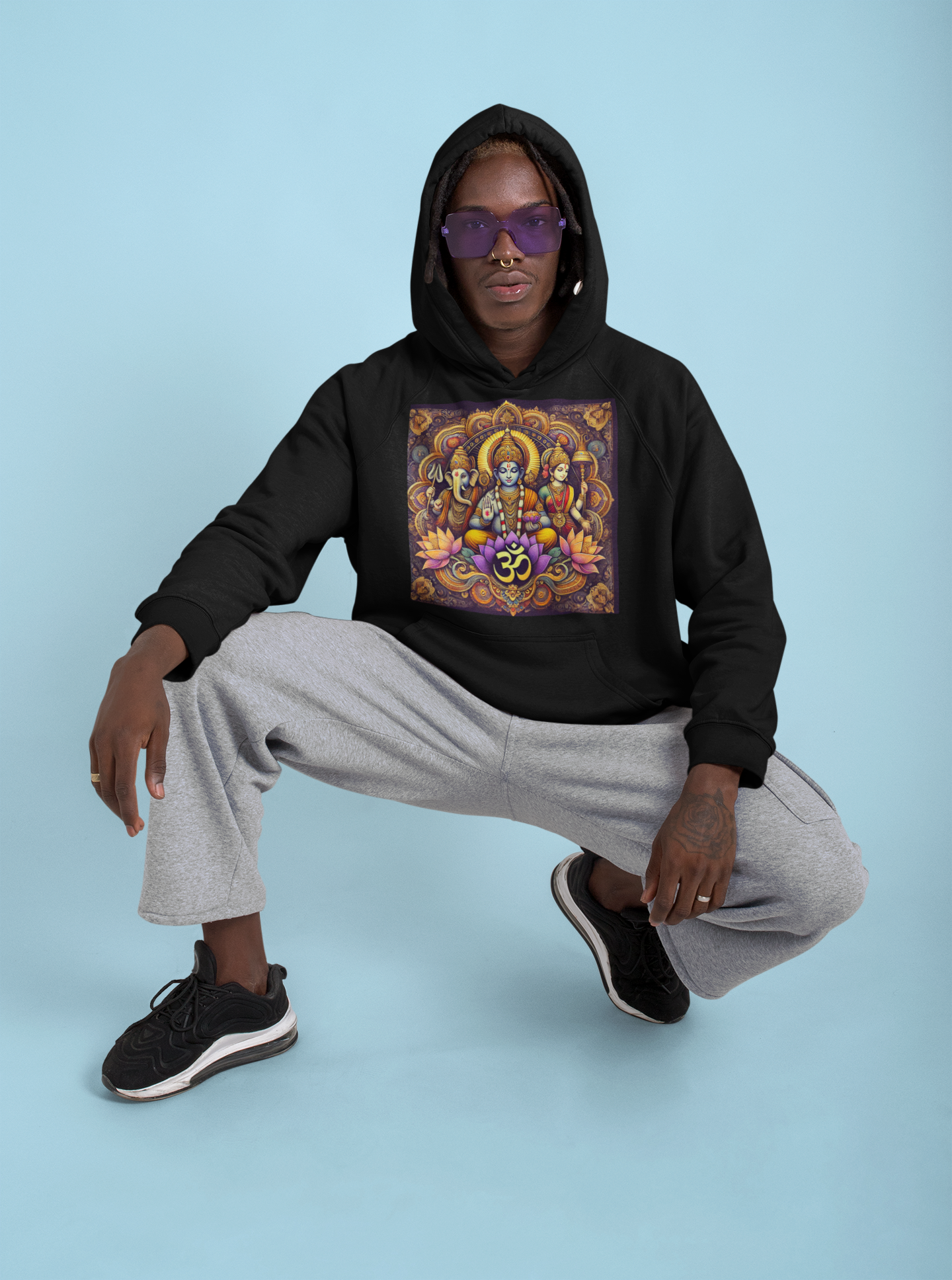 Der Hoodie „Drei Götter des Om“ verbindet Komfort mit spiritueller Kraft.
