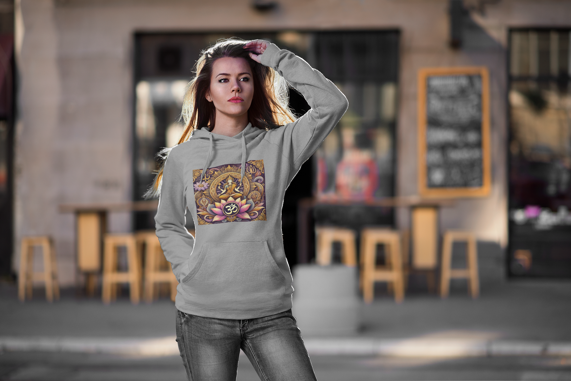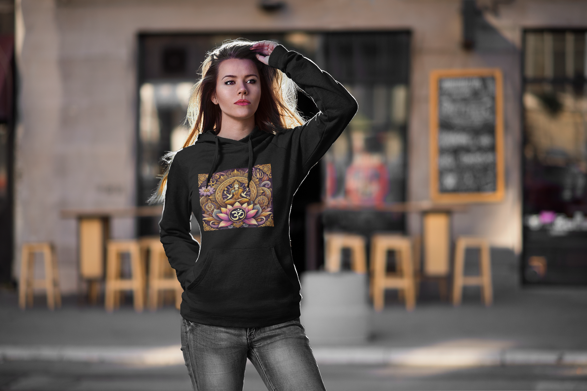 Der Krishna Hoodie verbindet Komfort mit spiritueller Symbolkraft. Das aufwendig gestaltete Krishna-Motiv mit Lotus, Om und sakralen Ornamenten macht diesen Hoodie zu einem kraftvollen Begleiter, der Wärme, Ruhe und Stärke verkörpert.
