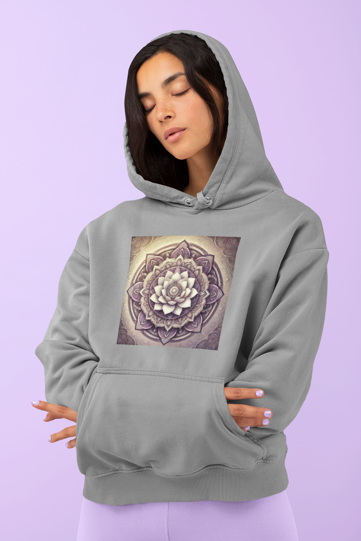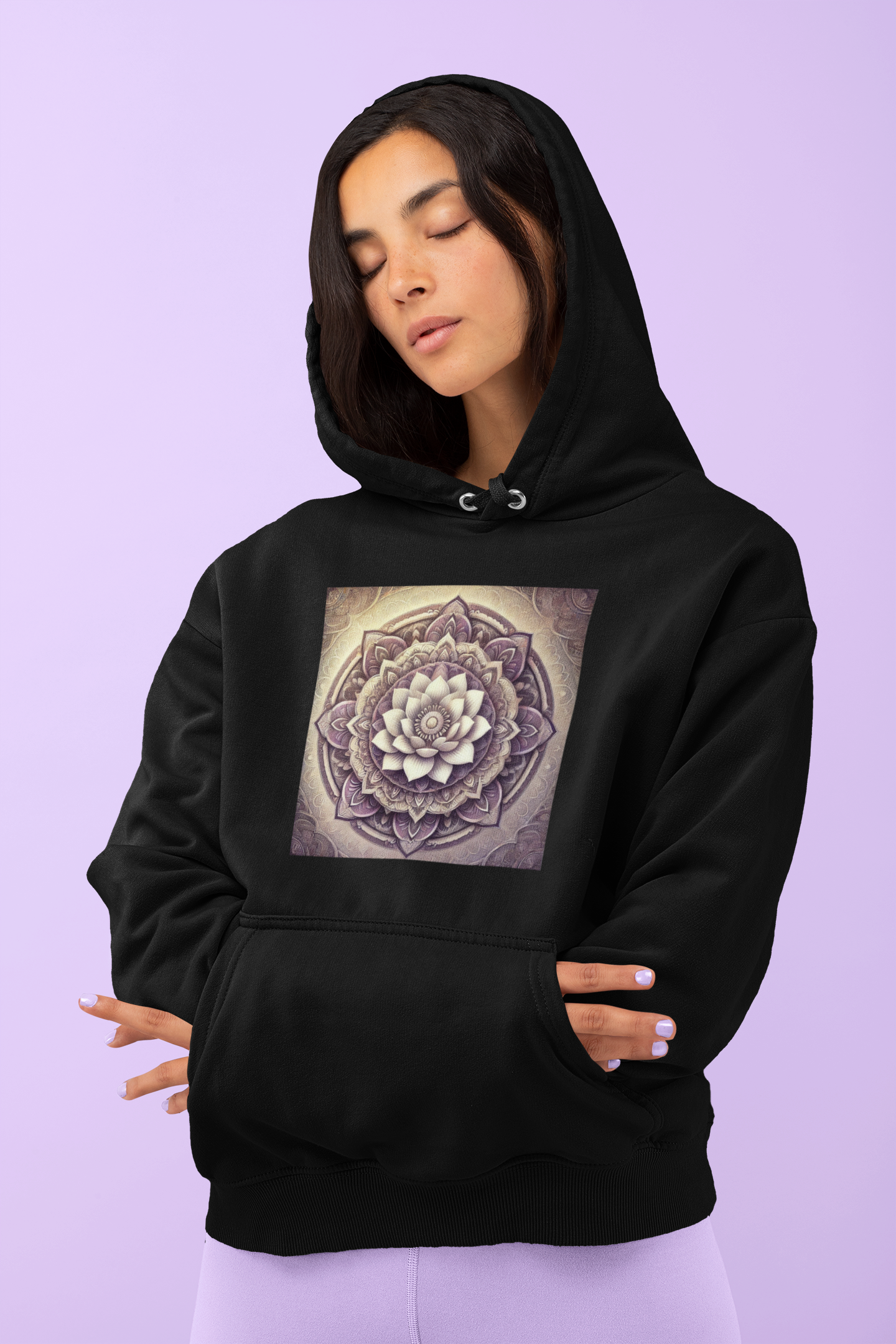 Der Lotus Mandala Hoodie vereint Wärme, Komfort und spirituelle Symbolik. Das detailreiche Mandala mit der zentrierten Lotusblüte steht für Reinheit, Bewusstheit und Transformation. Die harmonischen Farben und filigranen Ebenen verleihen dem Hoodie eine hochwertige, meditative Ausstrahlung.