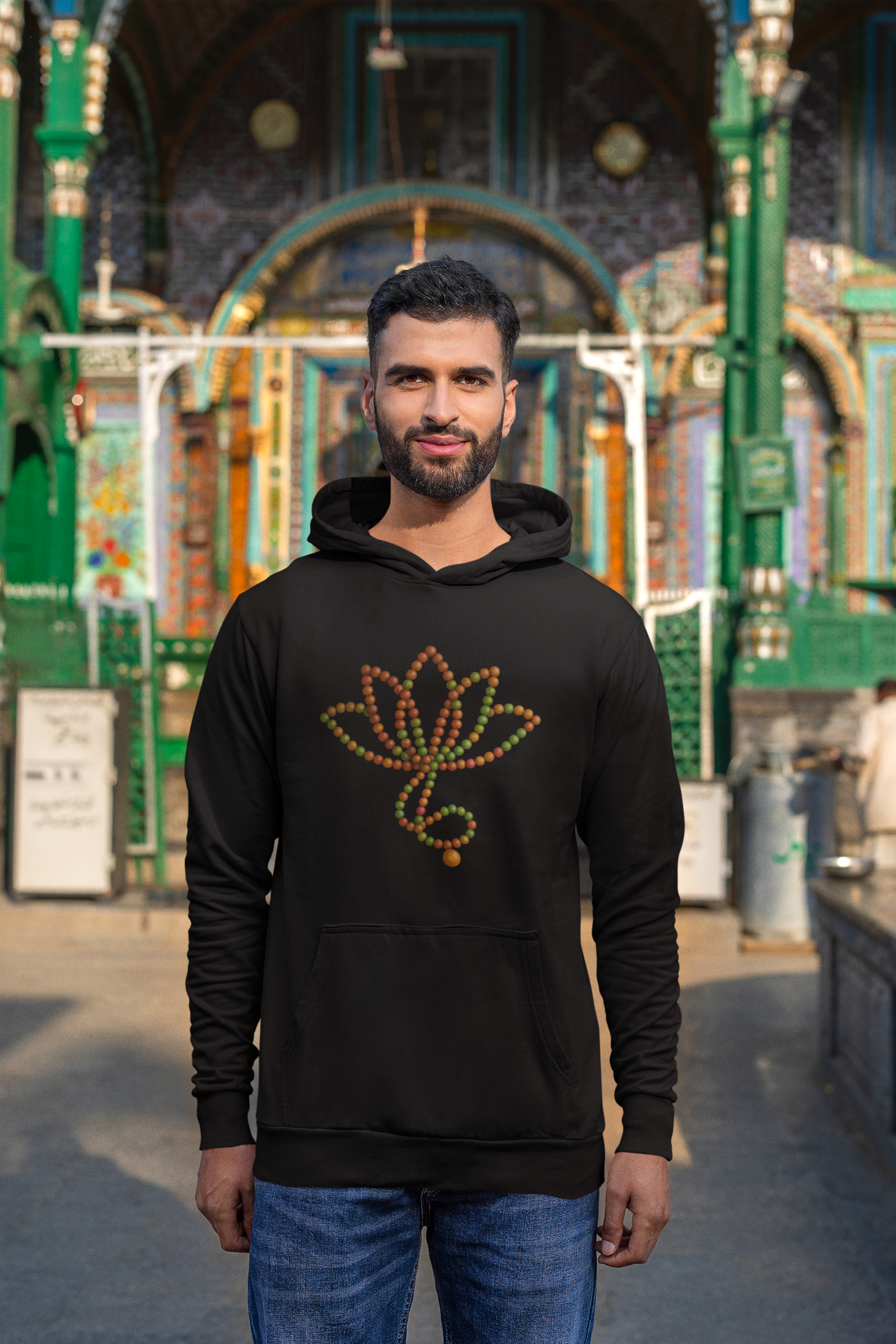 Der „Malakette“-Hoodie ist die perfekte Kombination aus Wärme, Komfort und spiritueller Symbolkraft. Das Design aus farbigen Mala-Perlen, arrangiert zur Lotusblüte, steht für innere Stärke, Klarheit und Bewusstsein.