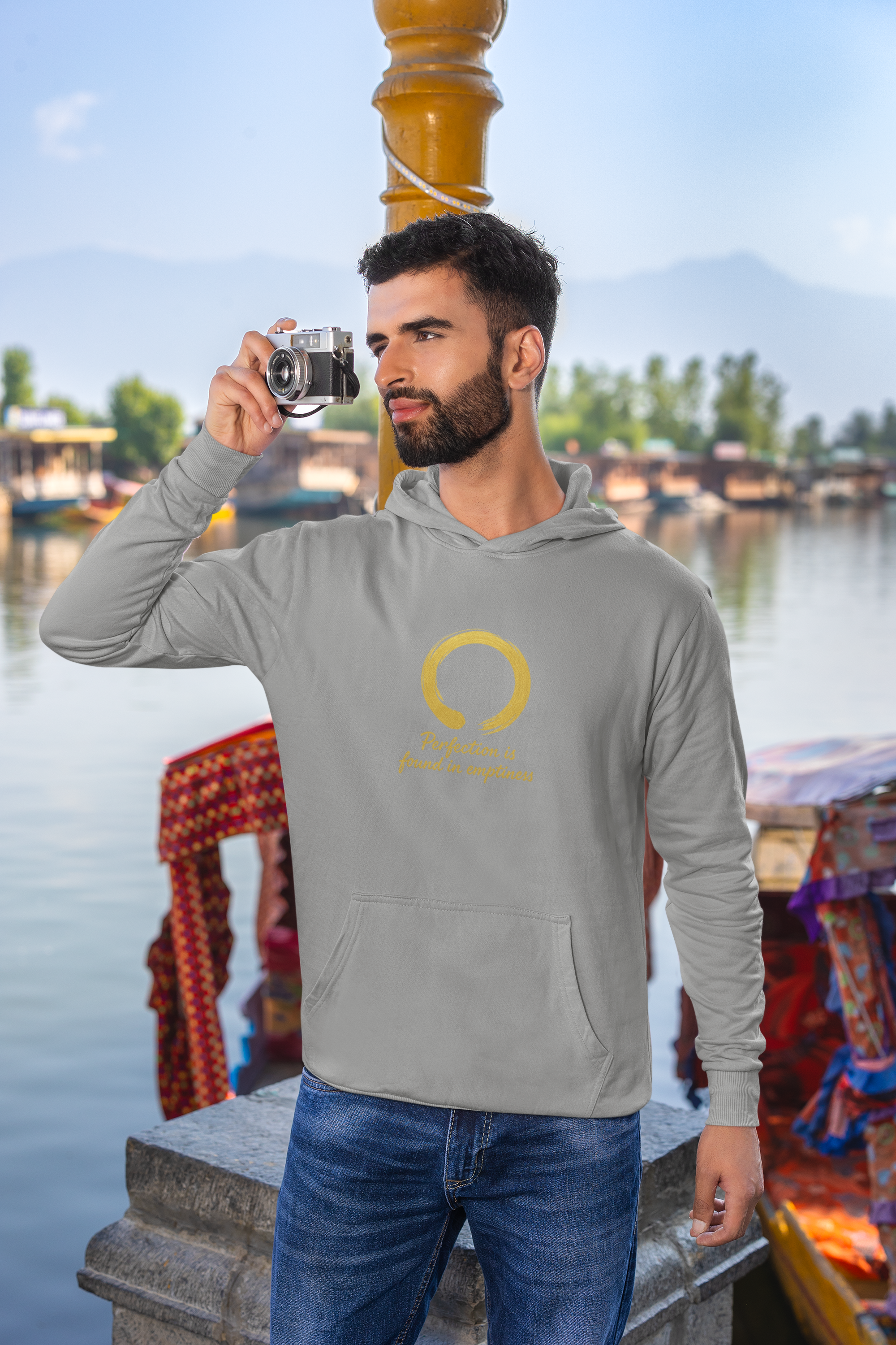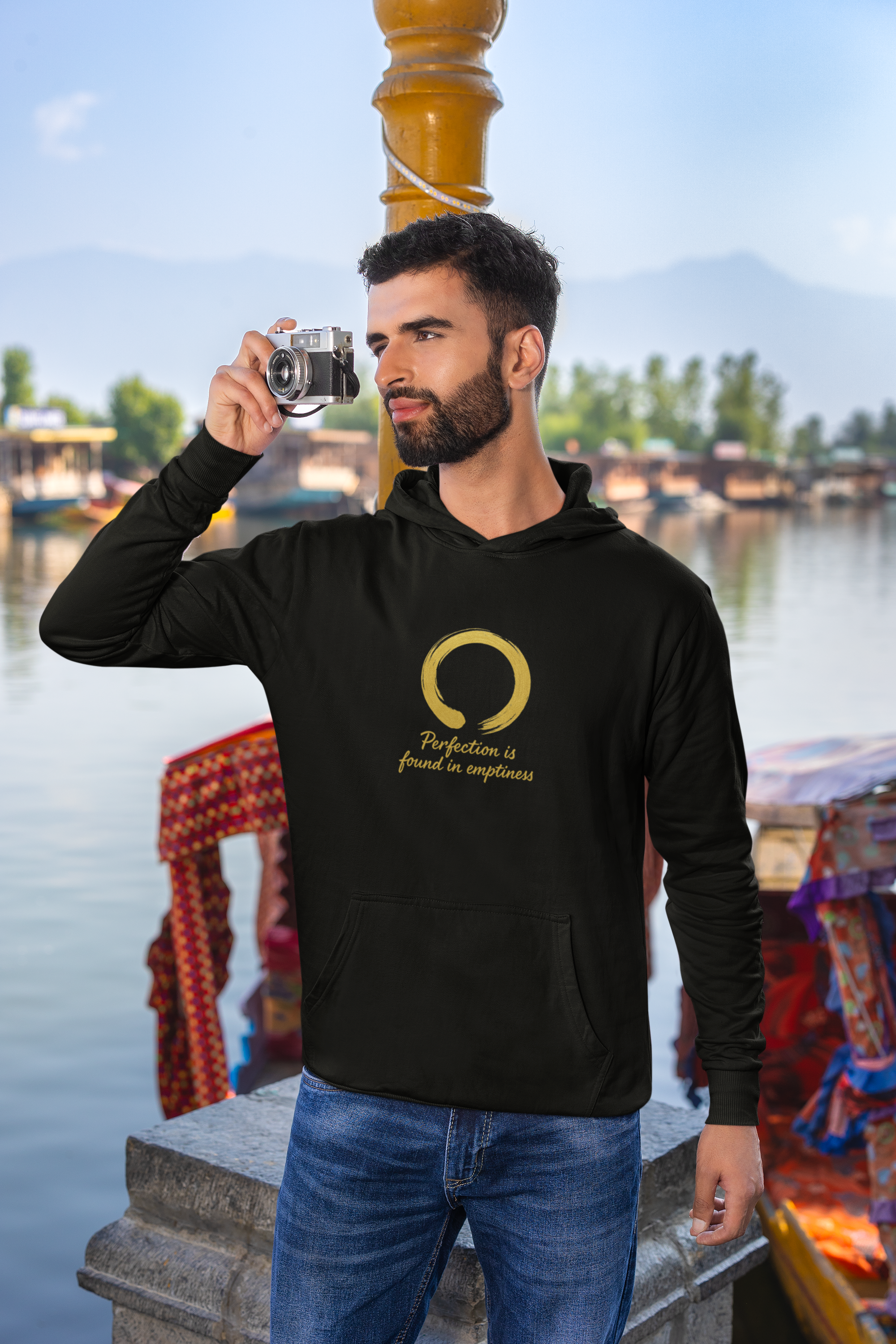 Der „Perfection“ Hoodie vereint Wärme, Komfort und spirituelle Klarheit. Das goldene Enso-Symbol wirkt auf dem Hoodie besonders kraftvoll – groß, klar, präsent und dennoch sanft.