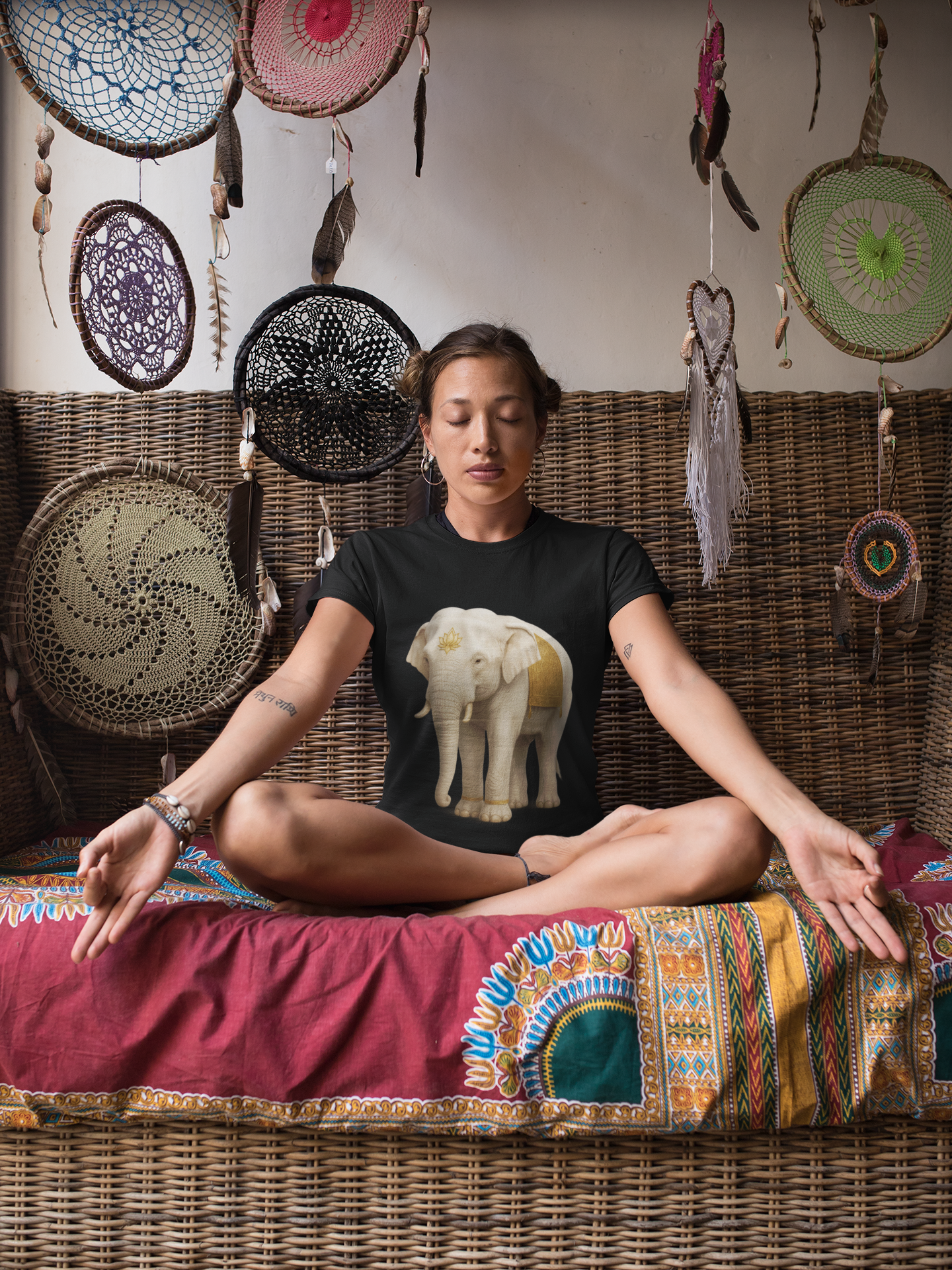 Bring Frieden, Stärke und Klarheit in deinen Look – mit dem „Weißer Elefant“-T-Shirt.