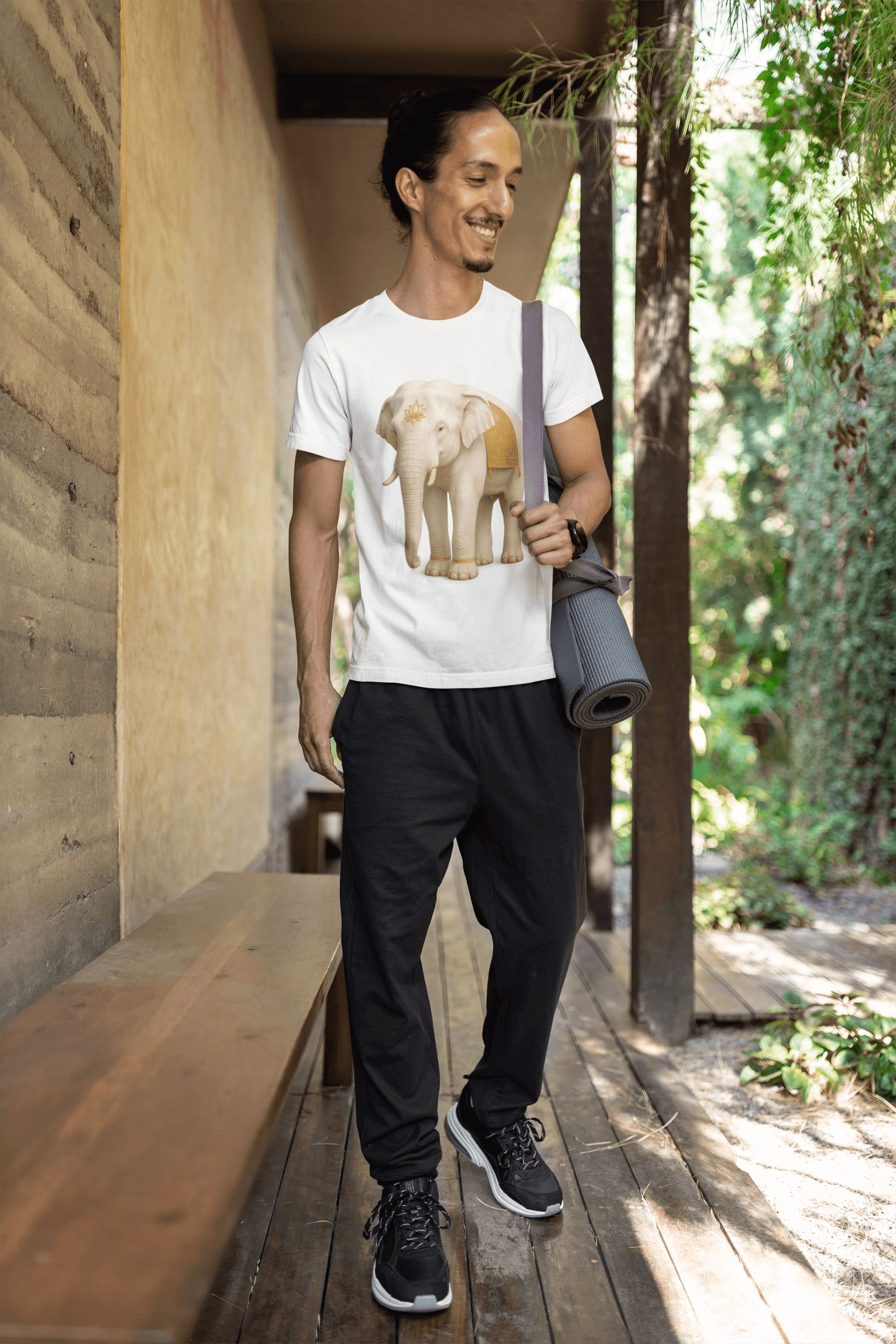 Dank des sorgfältigen Designs, der hochwertigen Materialien und der angenehmen Passform bietet dieses T-Shirt sowohl Stil als auch Funktionalität. Ob im Alltag, bei Meditation, Yoga oder einfach als stilvolles Statement – das Weißer Elefant Herren T-Shirt bringt Frieden, Stärke und Klarheit in deinen Look.